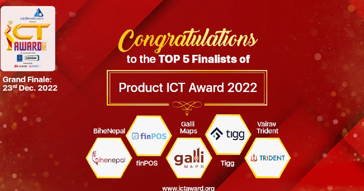स्टार्टअप आइसिटी अवार्ड विधामा उत्कृष्ट ५ मा पर्न सफल कम्पनीहरु क्युरा हेल्थ, मोनाल टेक, पिक एन्ड ड्रप, रेड टेल फक्स, रिंगेज टेक रहेका छन । यसैगरी प्रडक्ट आइसिटी अवार्ड मा पर्न सफल उत्कृष्ट ५ प्रडक्टहरुमा बिहे नेपाल, फिनपस, गल्ली म्याप्स, टिग र भैरव ट्रिडेन्ट रहेका छन ।