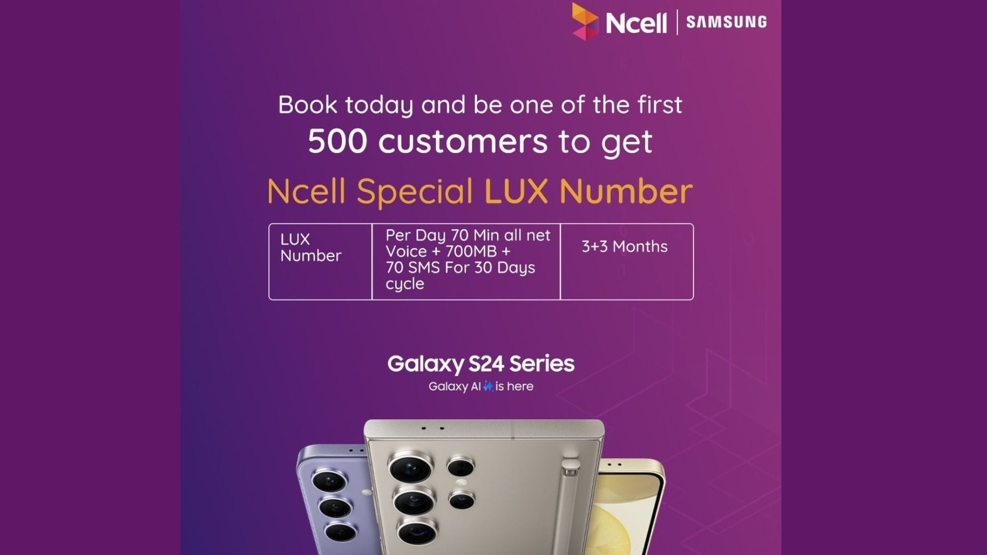 काठमाडाैं । एनसेल र सामसङ नेपालबीच सामसङ ग्यालेक्सी एस२४ सिरिजका स्मार्टफोनमा आकर्षक बन्डलिङ सेवा र विषेश सुविधा उपलब्ध गराउन साझेदारी भएको छ । यस साझेदारी अन्तर्गत, एस२४ सिरिज किन्न अग्रिम बुकिङ गर्ने पहिलो ५०० जना ग्राहकले आफ्नो ईच्छा अनुसार एनसेलको स्पेशल लक्स नम्बरलिन पाउने छन् ।