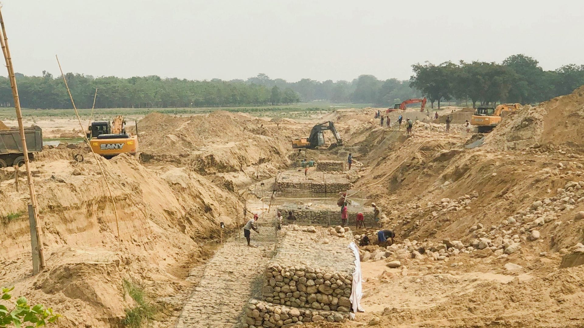 तटबन्ध निर्माण तथा जग्गा पुर्ने कामलाई निर्धारित समयभित्रै सम्पन्न गर्न दैनिक दुई सिफ्टमा काम भइरहेको छ । पहिलो सिफ्टमा बिहान ६ देखि ११ र दोस्रो सिफ्टमा साँझ ५ देखि ११ बजेसम्म निर्माणका काम चलिरहेको छ । ग्याबिन लगाउने तथा जग्गा पुर्ने काममा दैनिक दुई सय कामदार खटिइएका छन् ।