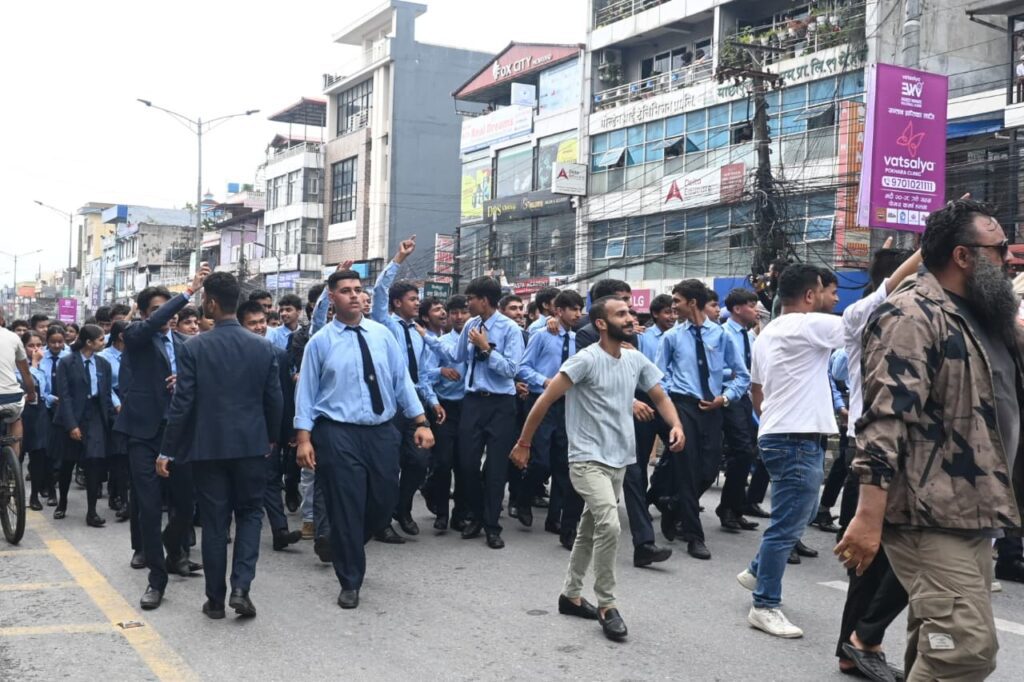 सोही क्रममा पोखरामा समेत भएको आन्दोलनमा विद्यालयको पोशाकमै विद्यार्थीहरू सहभागी भएका छन् ।