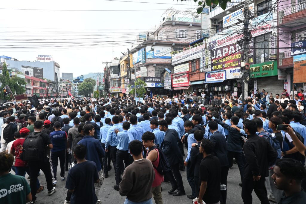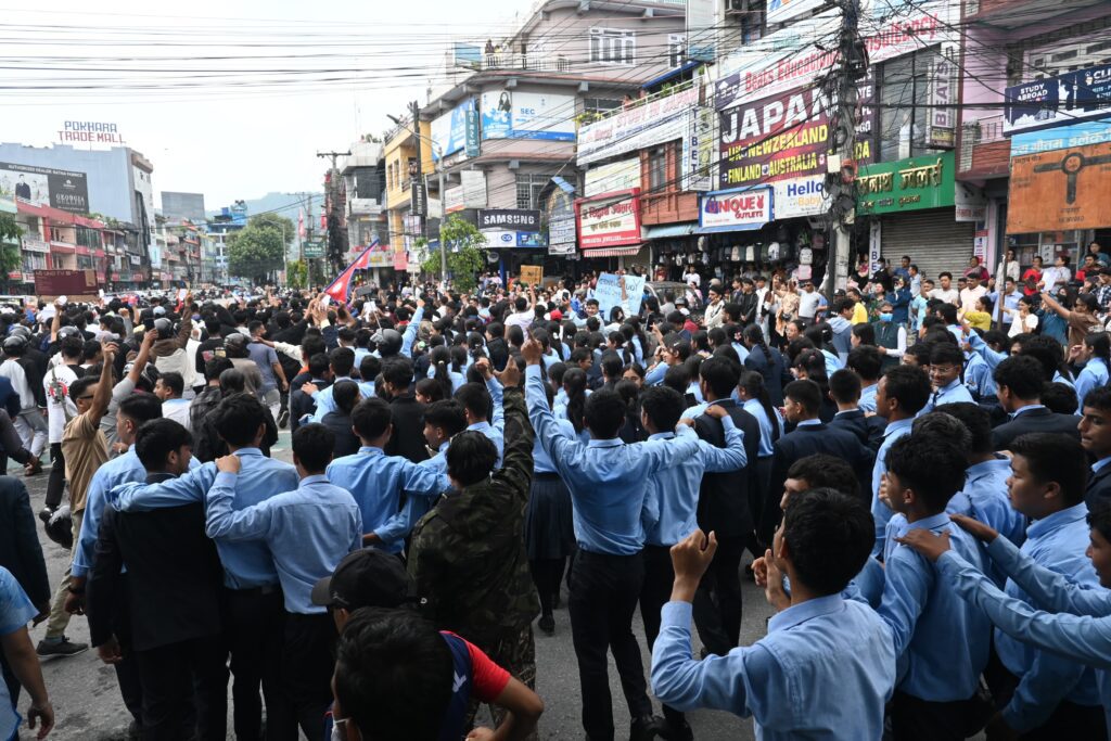 काठमाडौं । पोखरामा जारी रहेको जेनजी पुस्ताको प्रदर्शनमा विद्यालय पोशाकमै सहभागी भएका छन् ।