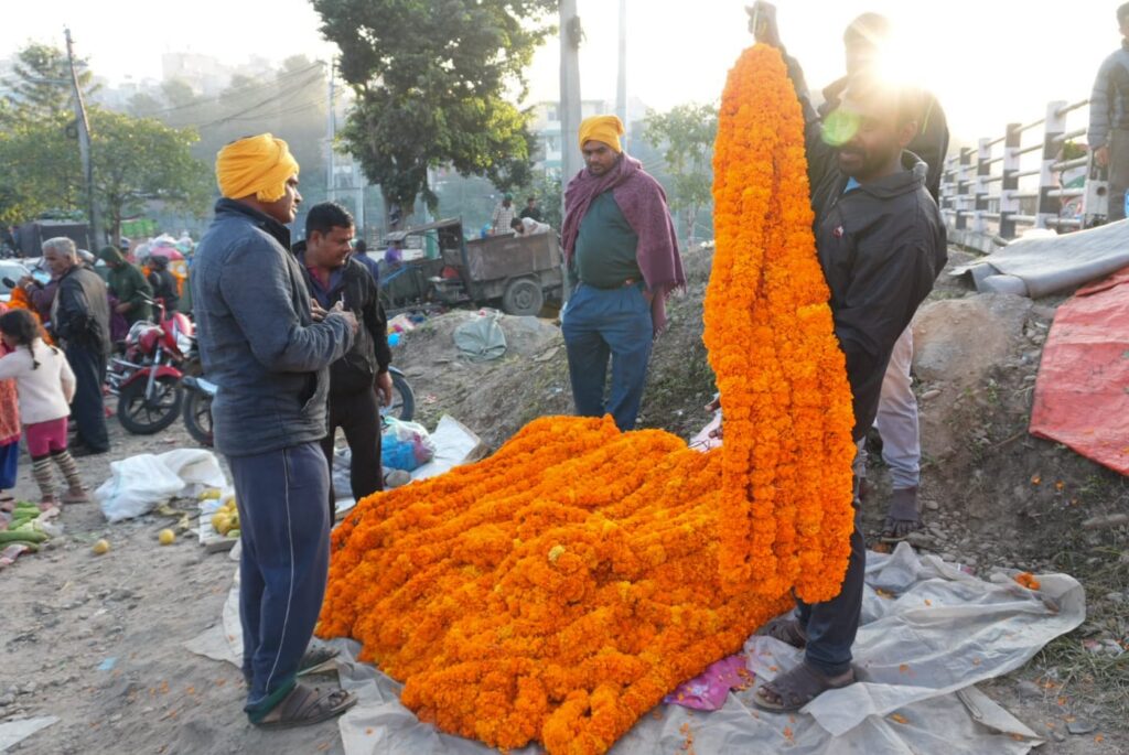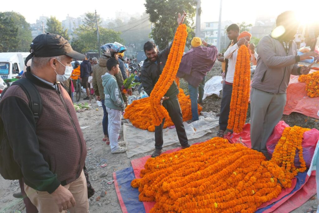 तिहारमा फूलको उपयोग निकै हुन्छ । राजधानीका विभिन्न स्थानमा फूल कारोबार भइरहेको छ । खासगरी न्यूरोड, असन, कालिमाटी लगायत ठाउँमा फूल किनबेच गर्नेहरुको भीड छ । प्रस्तुत तस्बिर कालिमाटीमा खिचिएका हुन् ।