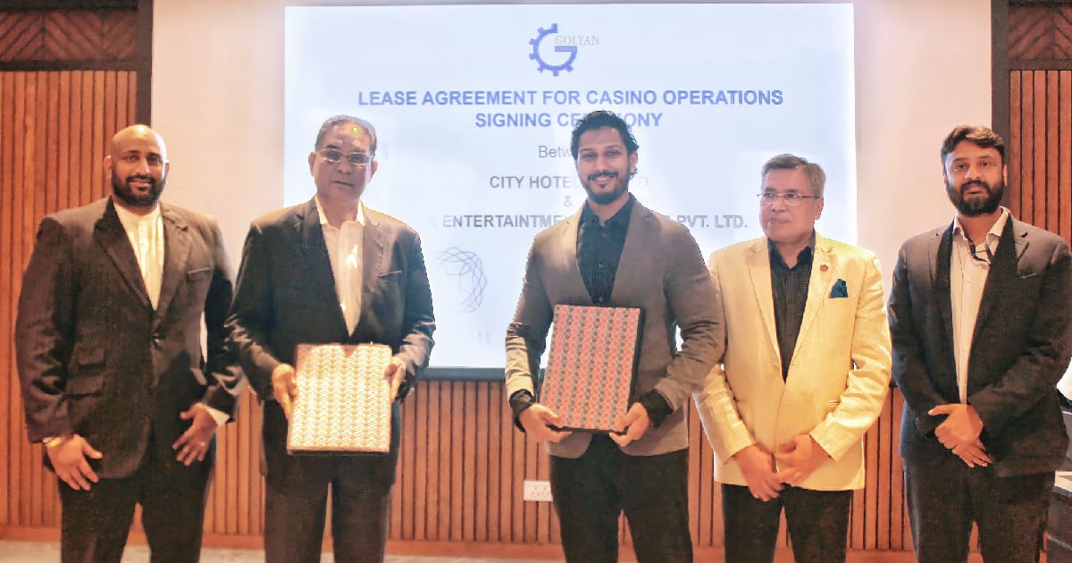 ह्यात प्लेस होटलमा क्यासिनो सञ्चालनको लागि भाडा सम्झौता भएको छ । गोल्यान ग्रुप अन्तर्गतको सिटी होटल र र्यांक इन्टरटेनमेन्ट होल्डिङ्सबीच मंगलबार क्यासिनो भाडा सम्झौता भएको हो । सम्झौतामा गोल्यान ग्रुपका प्रबन्ध निर्देशक अक्षय गोल्यान र र्यांक इन्टरटेनमेन्ट होल्डिङ्समन अध्यक्ष रवि विजेरत्नेले हस्ताक्षर गरे ।