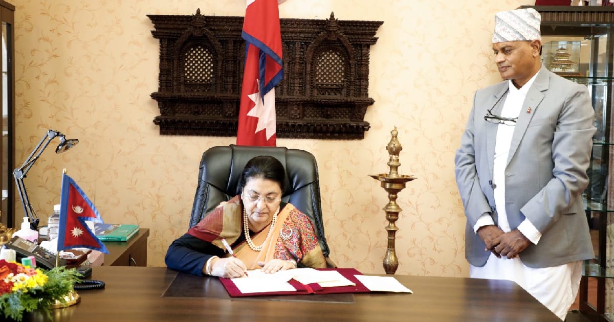 काठमाडौं । राष्ट्रपति विद्यादेवी भण्डारीले आइतबार नेपाल इञ्जिनियरिङ परिषद् ऐन २०५५ लाई संसोधन गर्न बनेको विद्येयक प्रमाणीकरण गरेकी छन् । संघीय संसदका प्रतिनिधी सभा र राष्ट्रिय सभाको बैठकबाट पारित भएर प्रमाणिकरणको लागि राष्ट्रपति समक्ष पेस भएका थियो ।
