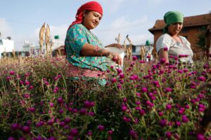 तिहारको आगमनसंगै भक्तपुरको गुण्डुमा मखमली फूल टिप्दै किसान