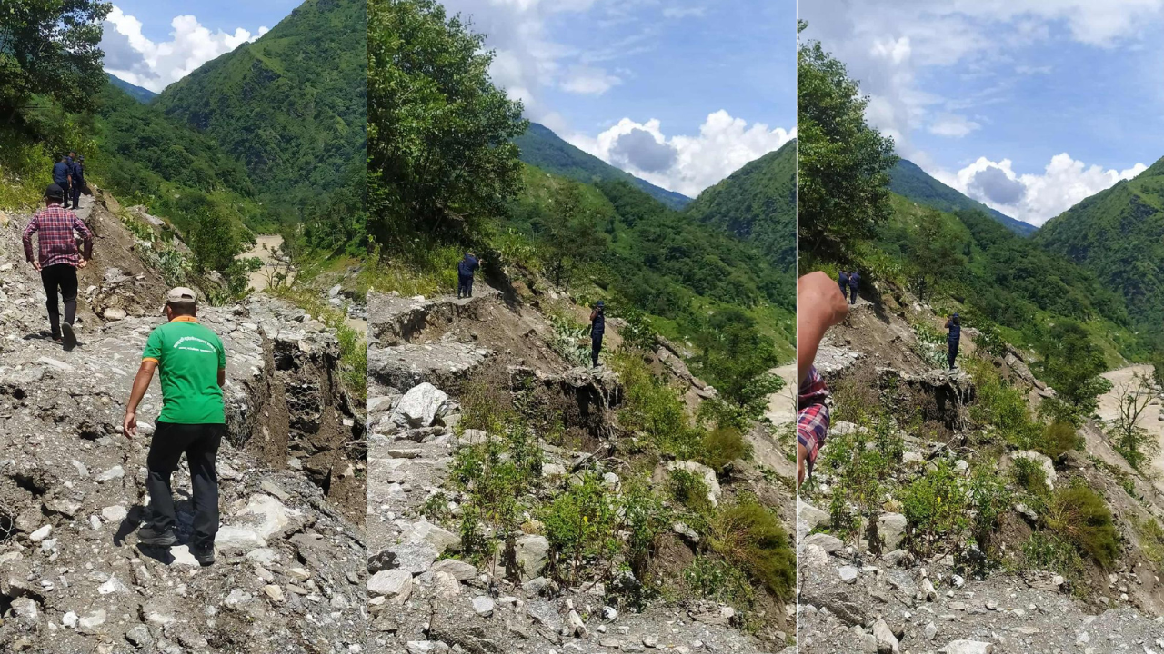 खाँदबारी-किमाथांका सडक खण्ड पहिरोले गर्दा अवरुद्ध