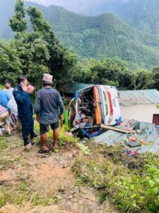 रसुवाबाट काठमाडौं आउँदै गरेको बस दुर्घटना हुँदा १२ जना घाइते