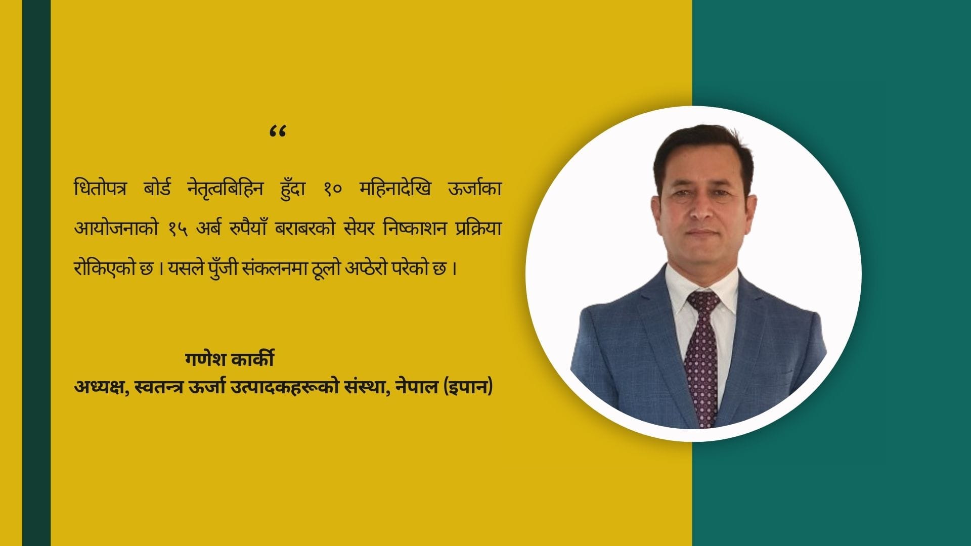 ‘साढे २८ हजार मेगावाट विद्युत उत्पादनको लक्ष्य पूरा गर्न बैंकको लगानी २० प्रतिशत पुर्याउने नीति लिइनुपर्छ’