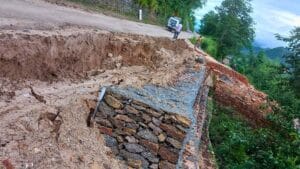 ढलान हुने अवस्थाकाे इर्खुवाखोलामा निर्माणाधीन पुल भत्कियो